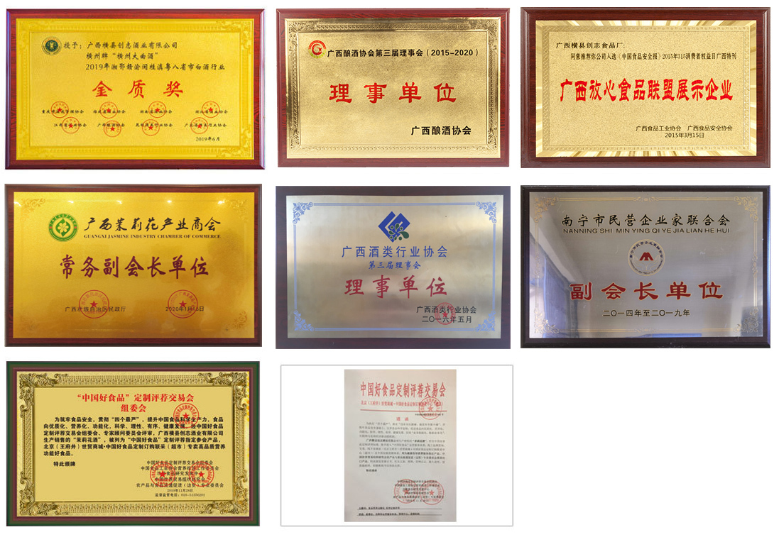 公司秉承“质量第一,诚信经营,服务社会”的经营理念。企业获得国家白酒生产和其它酒(果露酒)生产双认证,公司通过ISO9001:2015质量管理体系认证 。产品荣获“中国名优产品”、“质量达标放心食品”等荣誉称号,横县大曲酒被评为2019年度渝湘鄂赣闽桂滇粤八省市白酒行业金质奖,产品远销省内外,赢得了广 大消费者的喜爱和赞誉。